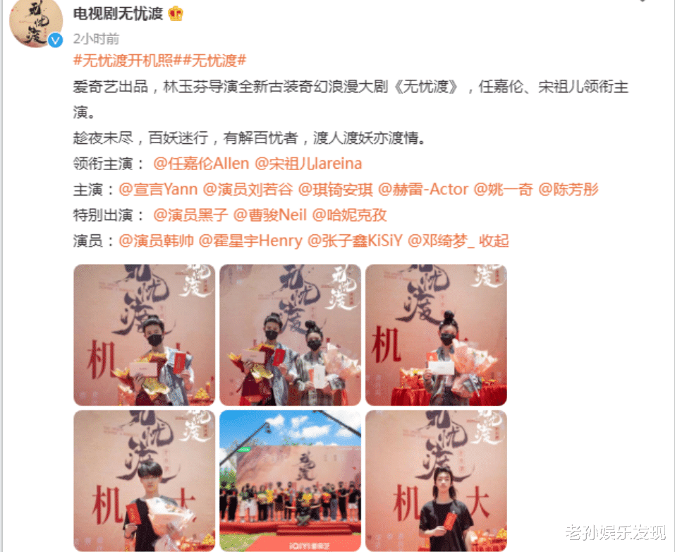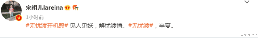 出演女主角的宋祖儿也在微博发文:#无忧渡开机照# 见人见妖,解忧渡情。#无忧渡#,半夏。