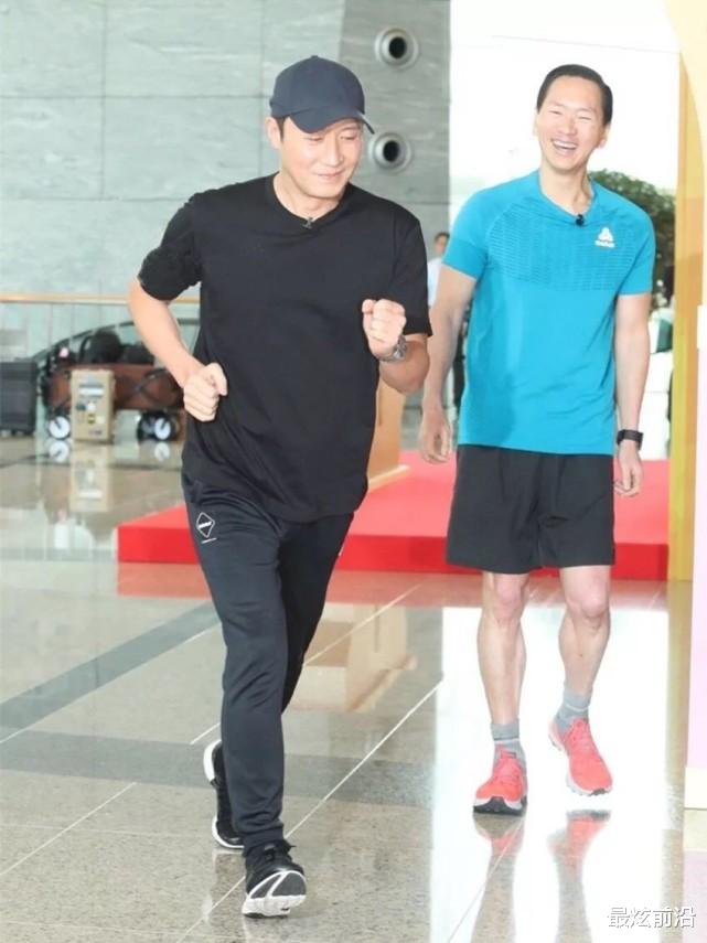 你会发现很多中年男人,之所以油腻的原因,就是出现在一些细节上,比如鞋子的款式选择过于笨重浮夸。在搭配一身黑色造型的时候,还去选择一双厚底的马丁靴,那么,整体造型就会显得格外拉垮没有档次。黎明在搭配全黑造型的时候,则选择了一双轻盈透气的运动鞋,运动鞋不仅不考验年龄,而且搭配起来也更加舒适。