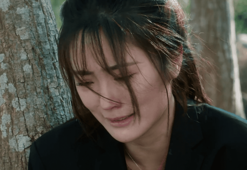 紧接着就是一场哭戏,张可盈的状态就是一行眼泪挂在脸上就再也没流出来了,之后更像是干哭没有眼泪,上扬的嘴角甚至有点像在微笑,自己都没有融入到角色里,更别提调动大家情绪了。