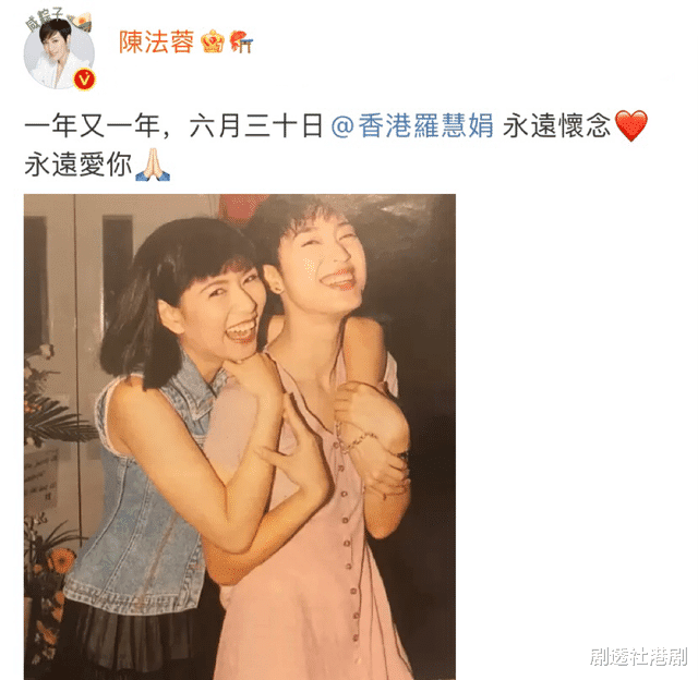 同时,陈法蓉也在社交媒体上,用简短的文字,表达了对好友的怀念。她在社交媒体上写道:一年又一年,永远怀念,永远爱你。