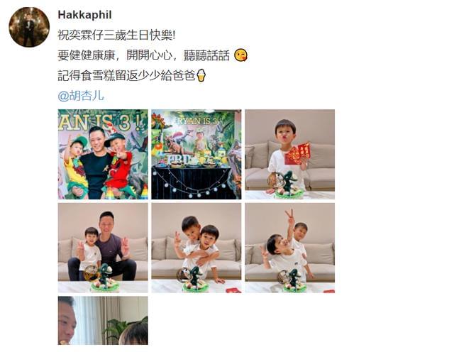 近段时间,妈妈胡杏儿因为在内地参加《浪姐》所以没办法帮儿子庆祝生日,但好在爸爸精心为他准备了生日会,还晒出一组庆生照为儿子庆祝,并配文:”祝奕霖仔三岁生日快乐!要健健康康,开开心心,听听话话,记得吃雪糕留返少少给爸爸。“