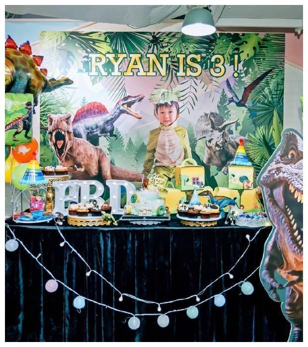 画面中可以看出庆生现场布置得很有创意,绿色的主题加恐龙元素,背景墙上还有小寿星穿着恐龙的玩偶服照片,看来李奕霖非常喜欢小动物。爸爸李乘德还特意为儿子准备了蛋糕和玩具,仪式感满满。