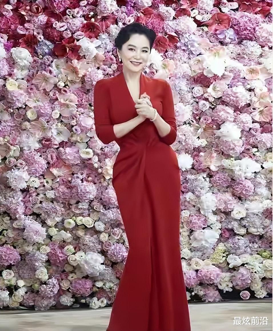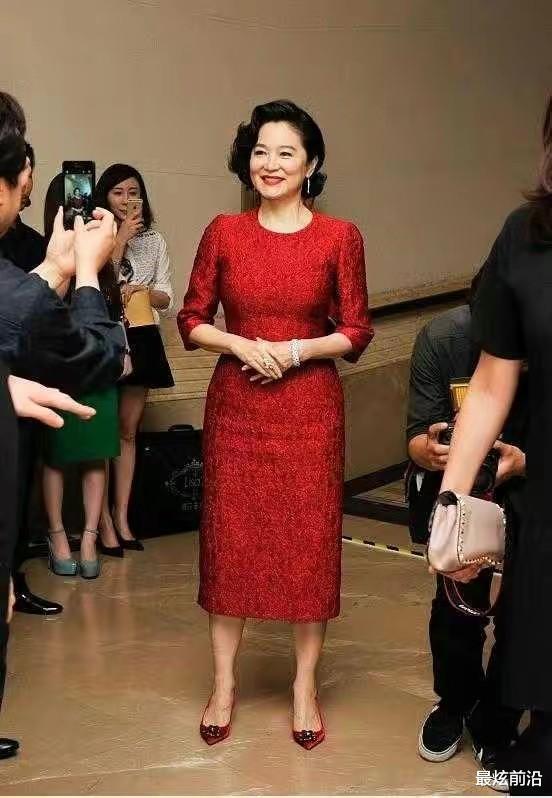 细数林青霞这么多的裙装造型,你会发现她非常喜欢红色的连衣裙,因为女人一旦上了年纪,肤色会逐渐变得暗沉无光,所以在色彩的选择上,尽量选择这种饱和度较高的颜色。