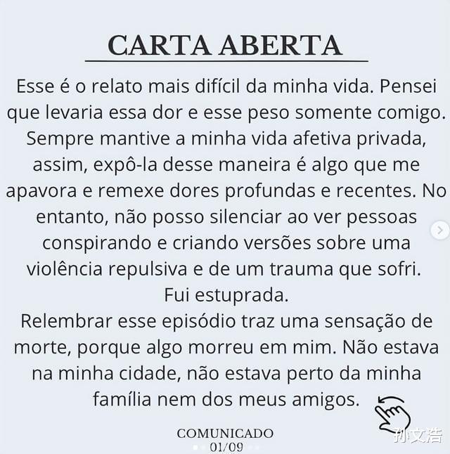 这件事最初是从一名男记者开始的,6月16日,巴西记者Leo Dias在接受一个节目采访时表示,他最近几周遇到了职业上的困境,不知道该不该发表关于女演员的报道。
