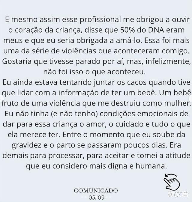“这个21岁的女孩怀孕后,隐瞒怀孕,甚至在怀孕期间工作,生下了孩子。根据记者Leo Dias掌握的信息,她要求医院抹掉她的出入记录,她甚至不愿意看到孩子的脸!”