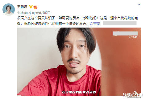 视频末尾,王传君惊喜出镜,王传君甜蜜称齐溪为“我们家齐老师”并为其送上祝福:“在舞台上乘风破浪,爱咋咋地”。公开艾特齐溪并亲自带着好友为齐溪打call的王传君,终于正式官宣了他与齐溪的恋情!