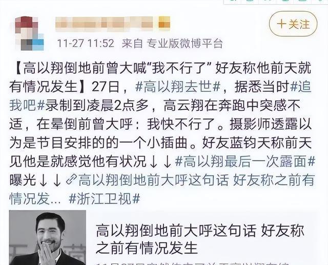回看当时的彩排纪录,高以翔早就透露出身疲力尽之态,在最后倒地前,高以翔曾轻声说过一句“我不行了”,可当时的工作人员都以为是节目效果,竟无一人上前查看,直到过了七八分钟,同场的嘉宾这才发觉不对劲,但可惜已经错过了最佳抢救时机