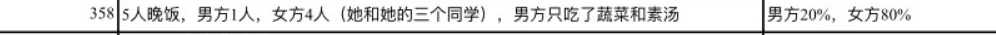 358元的5人饭局,男方让女方出80%,因为其余三个都是女方同学。