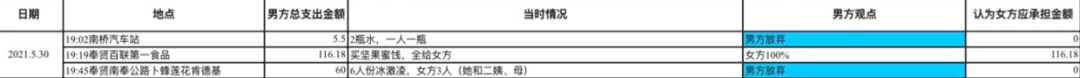 比如这个金额898元的男方生日聚会,既然是男方邀请女方去参加的,为什么饭局、蛋糕还要把钱算在女方头上?