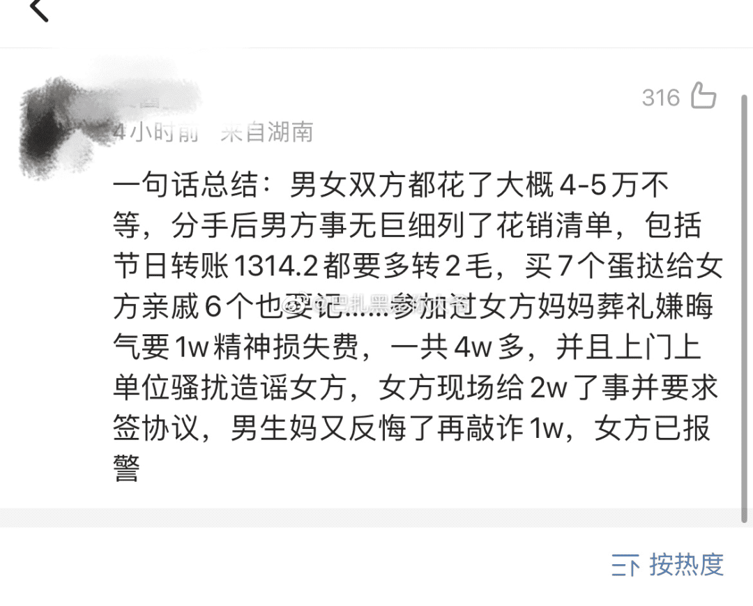 同样是情侣分手,同样是男生列出消费清单,让女生归还,但没想到,这份清单能事无巨细到这种程度。