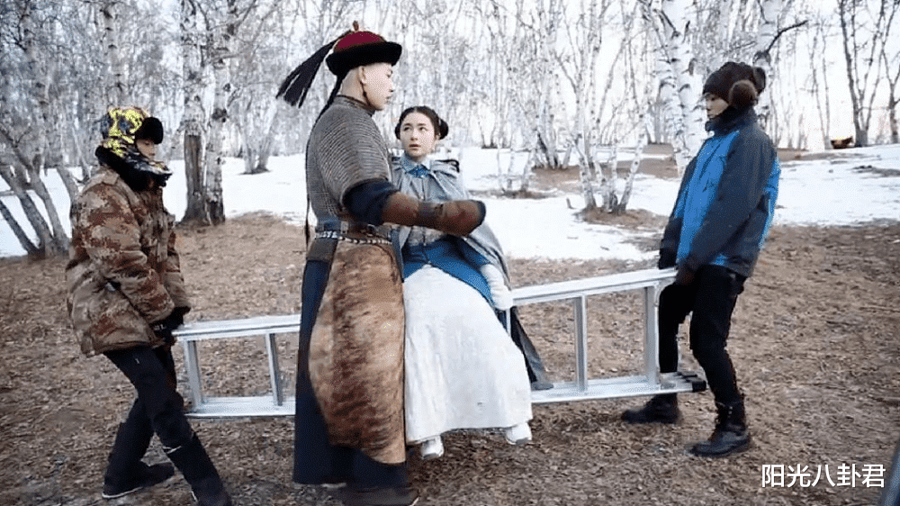 原来,辛云来拍戏时因为完全抱不起李兰迪,所以导演只好安排两位工作人员用梯子抬着李兰迪,他只需要做个抱的动作就好了。