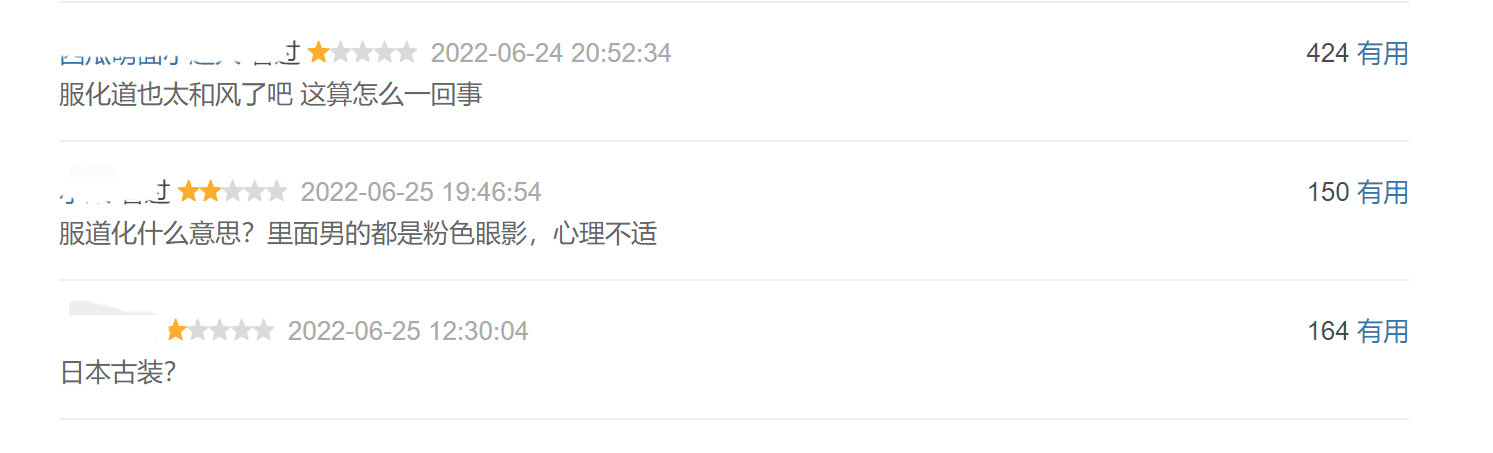 目前这部剧市场反应很混乱,播出后声讨这部剧造型的话题就没有终止过,很多媒体都刻意画重点,对这部剧中的日式服饰造型进行谴责。
