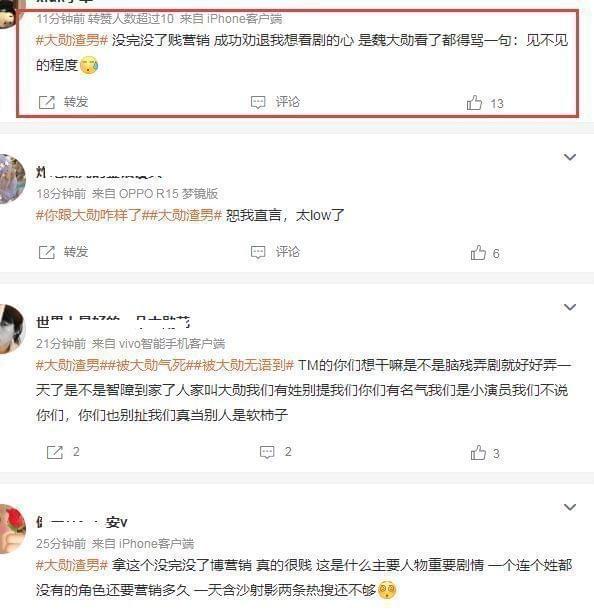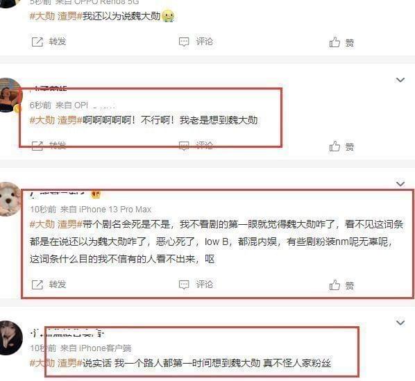 紧接着,大勋是渣男的词条还登上了热搜,很多人都吐槽剧方买热搜营销,一个都没有出来的人物,一天上了两次热搜,最倒霉的莫过于魏大勋,不知道的还以为说的是他,又一次躺枪了。