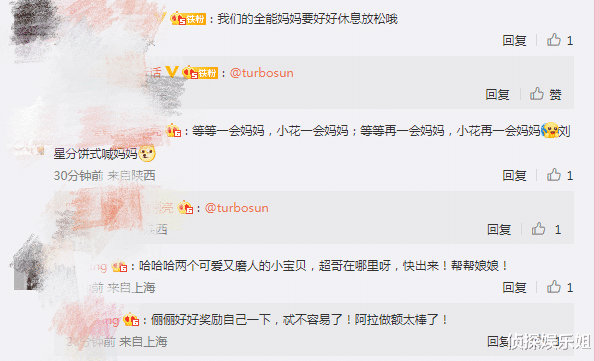 看到孙俪的发文和晒照后,网友纷纷留言:“我们的全能妈妈要好好休息放松哦”“等等一会妈妈,小花一会妈妈;等等再一会妈妈,小花再一会妈妈,刘星分饼式喊妈妈”“哈哈哈两个可爱又磨人的小宝贝,超哥在哪里呀,快出来!帮帮娘娘”。