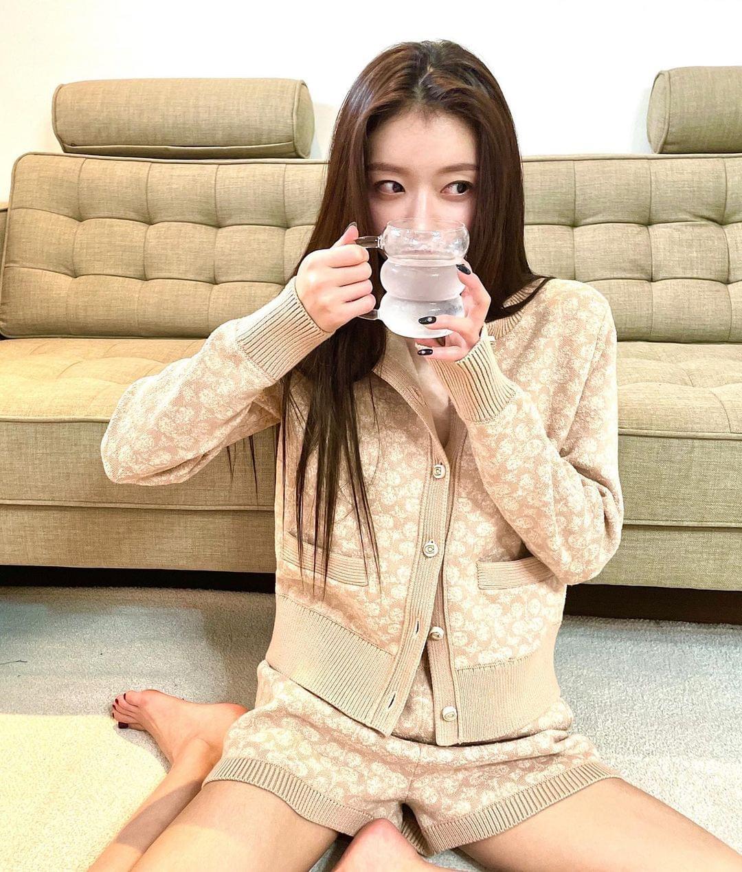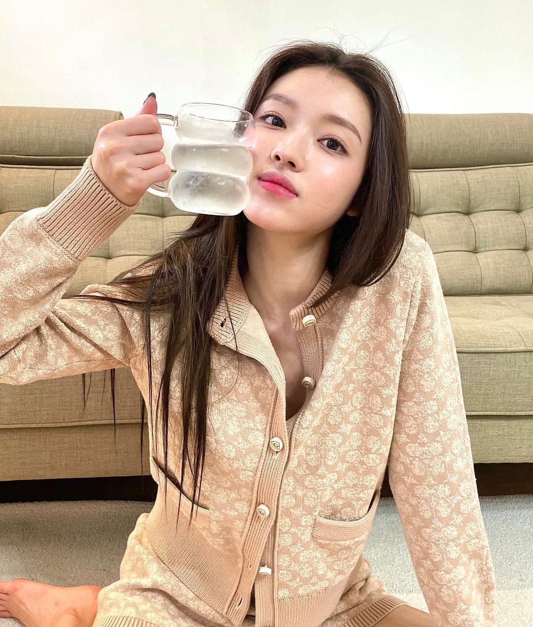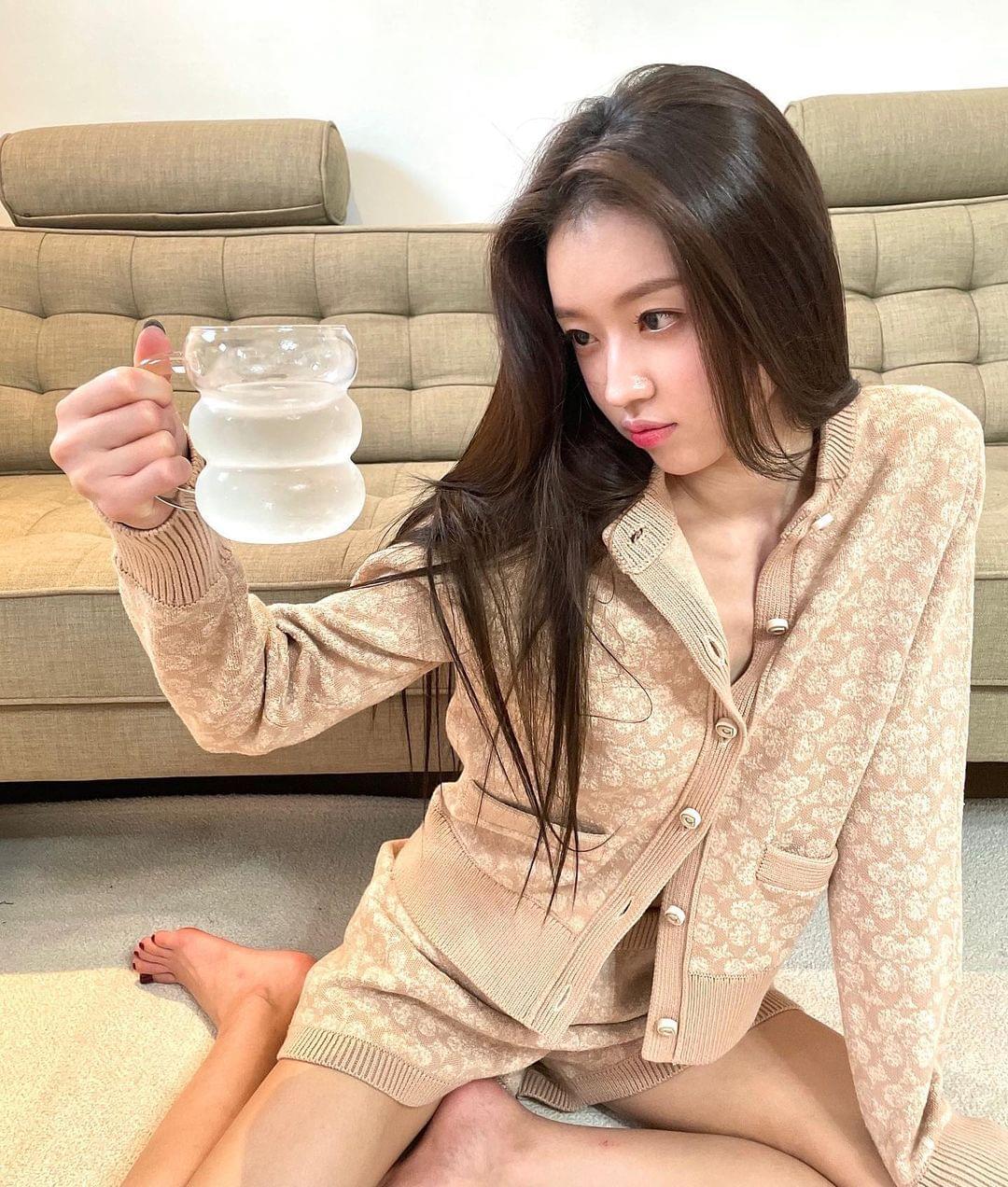 在公开的照片中,Oh My Girl成员YooA端着一杯水,坐在沙发前的地板上,身穿系扣的长袖开衫,摆出可爱的姿态,凝视着手中水杯的YooA,验证了看起来仿佛比水杯还小的脸型,散发出独有的魅力,尤其是YooA仅仅系住2个纽扣,大胆地秀出纤细的腰身。YooA以迷人的姿势展示了她微妙的性感,吸引了网友们的视线。