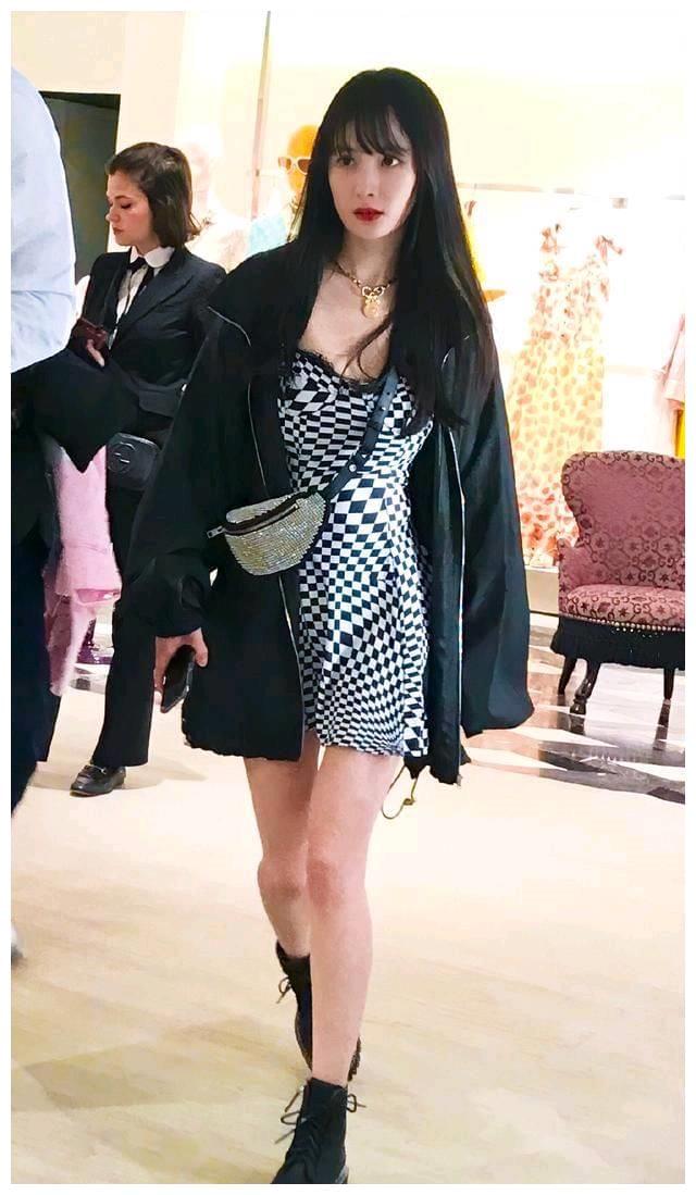 这张照片中那上面穿的这件黑色的衣服,不仅完美的展现她自己本身性感的身材,还能够看得出来他身材非常的瘦,尤其是这样的裙子穿她身上显得很潮流百搭。她简直就是一个行走的衣架。