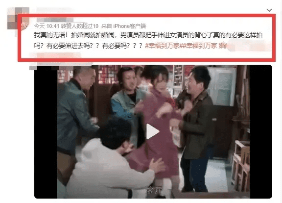 《幸福到万家》已开播,被指尺度太大。男演员的手都伸进女演员的衣服里摸胸了!观众直呼:弃剧,辣眼睛!