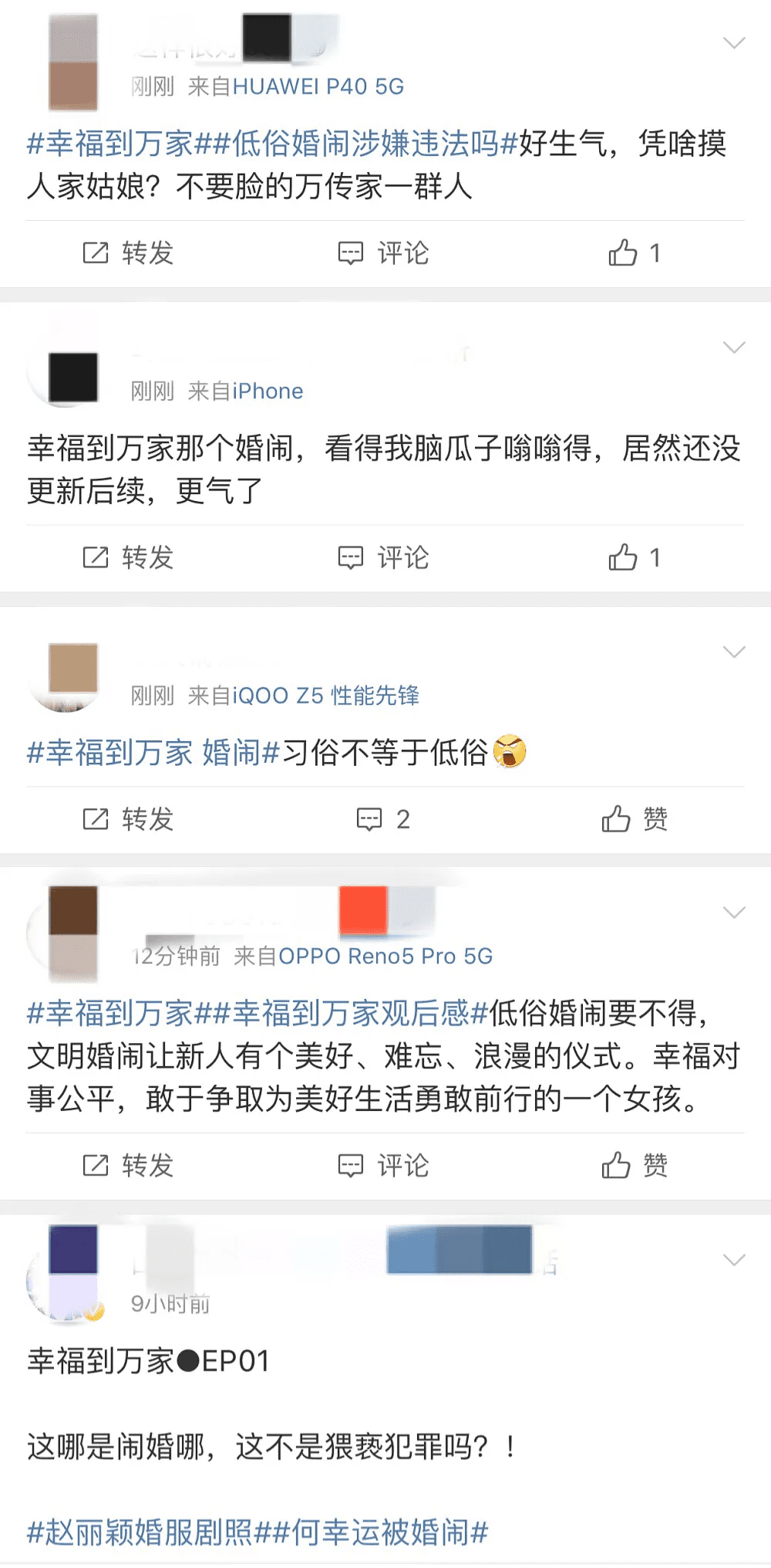也有观众气愤于农村封建习俗婚嫁“闹喜”的恶习,也直说“太真实了,好生气!”。