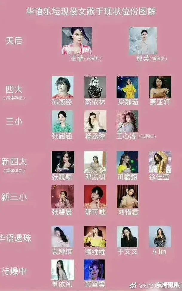 有“85花之最”,也有“现役男女歌手咖位”,甚至“娱乐圈姐夫大比拼”,每一张都能引来大批粉丝吵上三天三夜.......