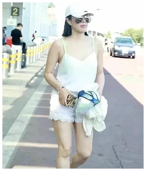 或许是受国外思想影响,钟丽缇穿衣一直挺大胆的,50多岁了还穿着吊带,同色系蕾丝短裤,她的身材非常有料,她线条完美的腿部曲线,珠圆玉润的,很性感,少女范十足呢而且肩膀吊带处还刻意露出了里面的牛油果绿的内衣吊带,看起来更有层次感,同时也给钟丽缇的这身全白look增加了亮点。