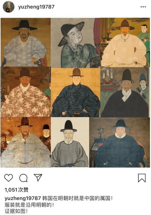 “韩国在明朝就是中国的属国,服装沿用明朝,证据如图!”