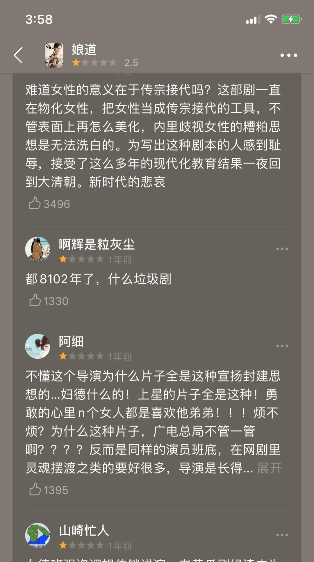 不过幸好,这部剧也仅仅是在婆婆妈妈之间火爆了,在21世纪的年轻人这里,被臭骂的狗血临头↓