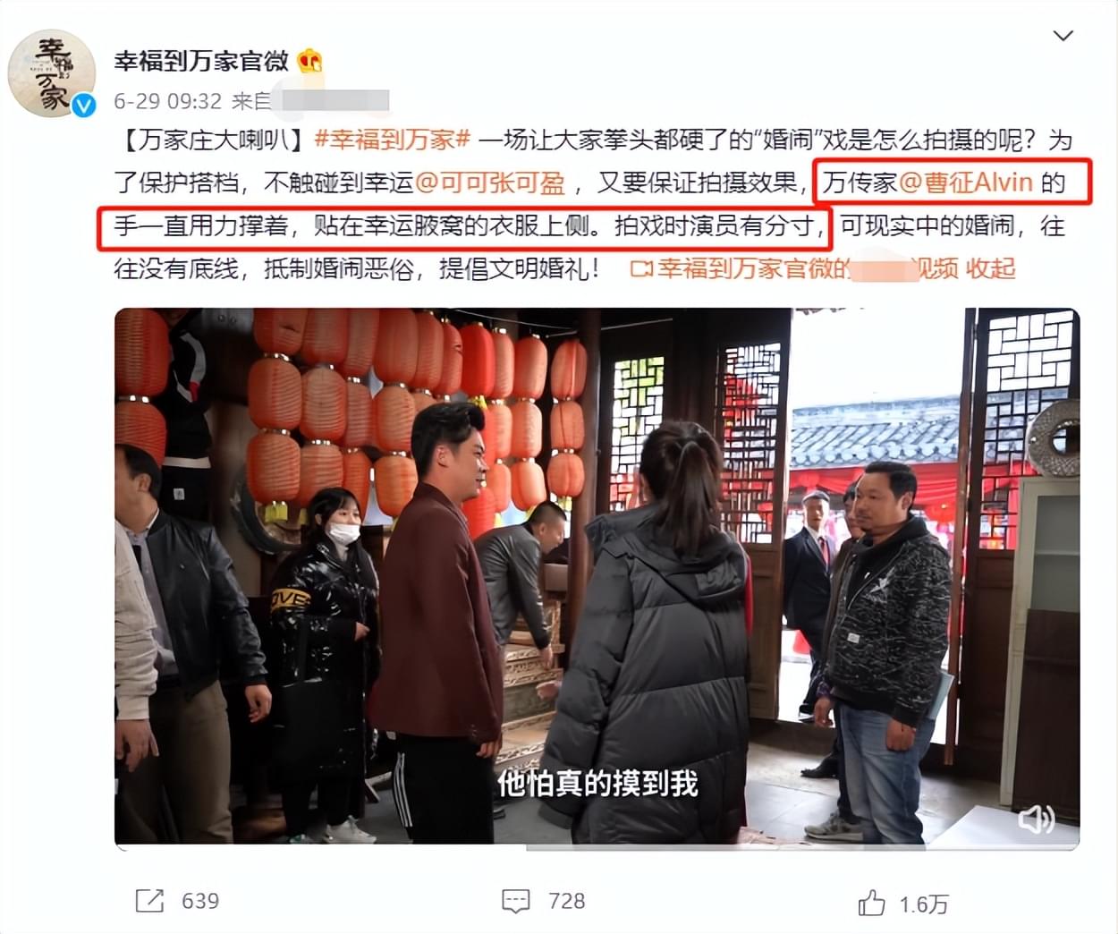 虽然剧里的万传家让人恨得牙痒痒,在剧外的曹征还是很可爱的,从官方发布的信息了解到,在拍摄这场让观众拳头都硬了的“婚闹”戏时。
