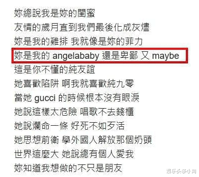 后面这里:你是我的Angelababy,还是卑鄙,有maybe。干脆直接就把baby的名字给报出来了呗?