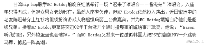 合着热狗这人唯一一点优点就是不高男女对立??!不分性别全面开炮。开玩笑啊,这行为根本不是优点,只是骄傲自大不懂得尊重这两个字怎么写就是了。如此接二连三地攻击他人,导致热狗被许多台湾明星抵制,江蕙、张惠妹的经纪人纷纷站出来怼热狗:“不要再来拿同行玩了”。看来不止一个人觉得他狗。