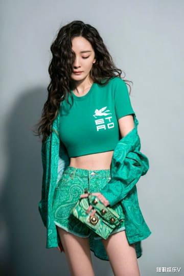 再来看另一张照片,她换了另一身衣服,不过都是同样的品牌和款式,只不过就是颜色不大一样,全身都是绿色的穿搭,而且这次也破天荒的穿上了外套,她微微低头,闭上了眼睛,宛如睡美人一般,而且由于衣服是露脐装,露出了那平坦的小腹以及清晰可见的俄马甲线,这张照片也是唯一一张露腿的照片,一双笔直纤细的大长腿十分的吸睛。