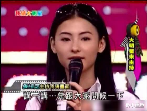 当年仍旧一脸青涩的张柏芝,代班主持《我猜我猜我猜猜猜》的视频画面截图。
