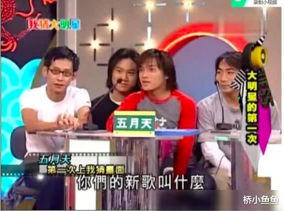 五月天第一次参加《我猜我猜我猜猜猜》的视频画面截图,好像没看到阿信呢!
