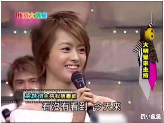 香港歌手、演员梁咏琪当年代班主持《我猜我猜我猜猜猜》的视频画面截图。