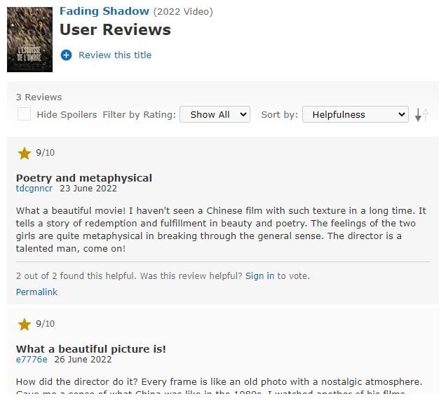 IMDb评论截图“尽力了,就不留遗憾了”做这部片子真的很不容易。满打满算我们总共就拍摄了19天,开机前全剧组还被隔离了21天。每天拍18个小时。演员们的片酬基本都可忽略不计了。我们声音指导、美术指导也基本上是非常低的友情价请来的。大家是真的愿意帮忙做这部片子,也真的愿意配合。