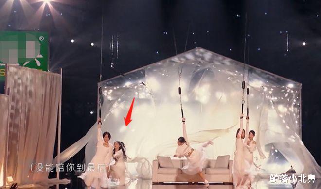 黄奕那一组的舞台设计中有吊起威亚的一个设计,正在各位姐姐们仙气飘飘吊起来时,意外发生了,黄奕没抓稳绳子从威亚上面掉下来了。