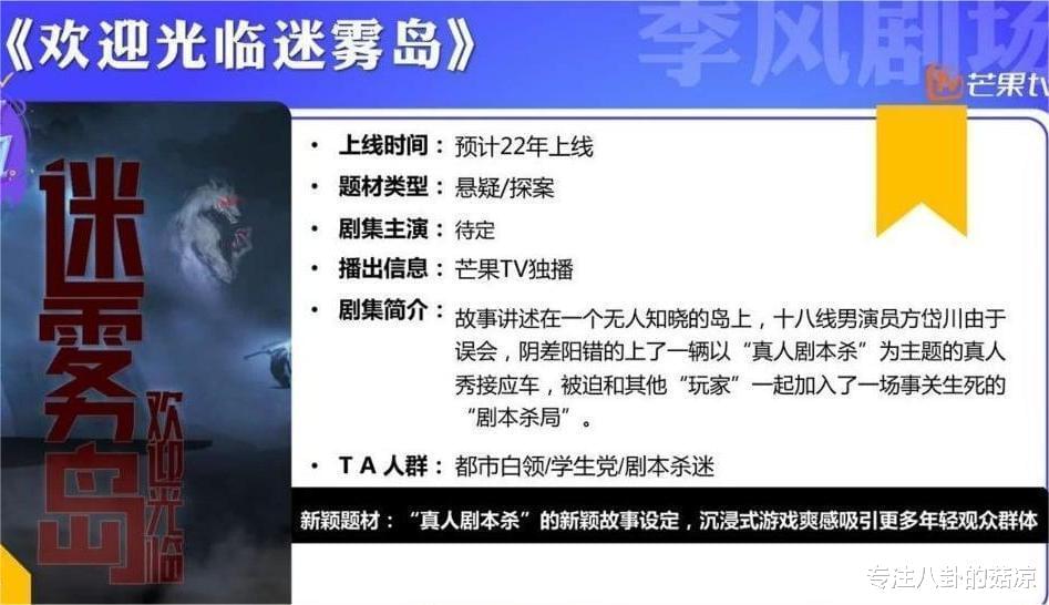 据悉,这部《欢迎光临迷雾岛》预计将于今年下半年开拍,由芒果TV独家播出,大家期待这部新剧吗,欢迎在评论区留言讨论哦!