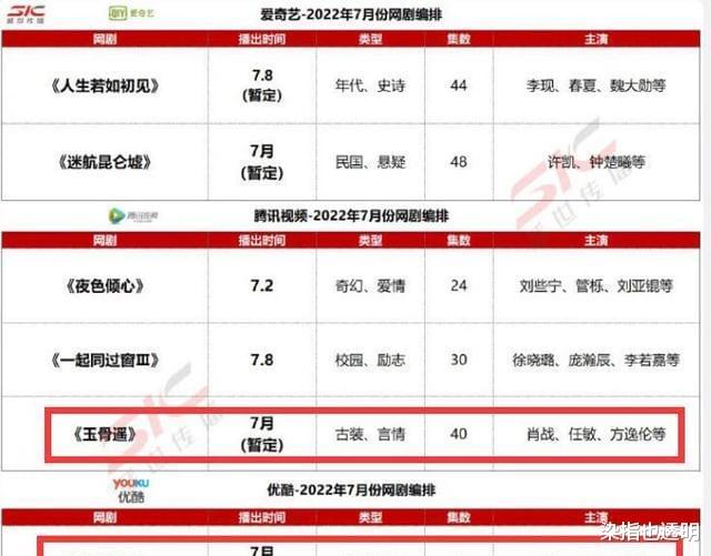 官方平台很早就表示《玉骨遥》将会在暑假播出,现在进入七月份,相关的排期表也出炉了。从相关信息来看,《玉骨遥》暂定在七月播出,消息发布以后很快登上了热搜引起热议。这对于粉丝们来说,将会是非常好的消息吧。