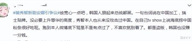 当然,《安娜》辱华的热度要比《夏娃》高很多,起因就是安娜是由女爱豆裴秀智主演。裴秀智是韩国的国民初恋,在中国也拥有大量粉丝。当《安娜》传出辱华争议后,就出现了粉丝帮忙辟谣澄清的现象。粉丝让中国观众放宽心,毕竟韩国人狠起来自家总统都能黑,没有必要为了一句在中国加工瑞士贴牌的台词大动干戈,更没必要上升到辱华。这种想法真的恨铁不成钢。
