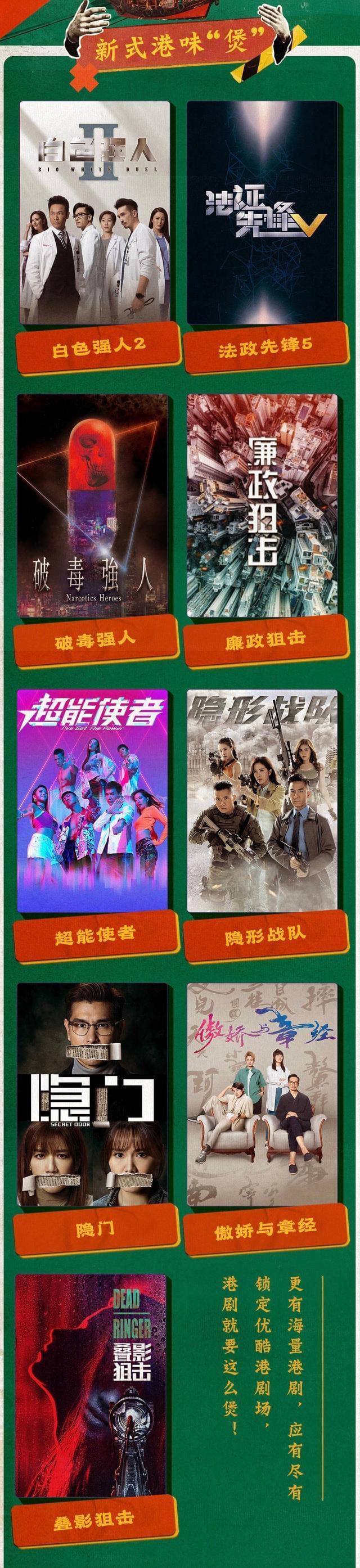 《法证先锋5》、《破毒强人》、《廉政狙击》、《超能使者》、《隐形战队》、《隐门》、《傲娇与章经》和《叠影狙击》。