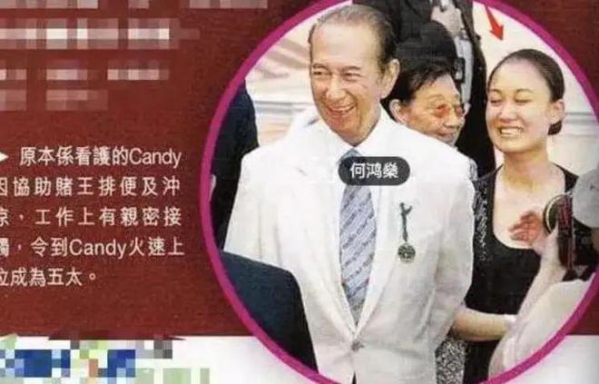 赌王出院后,以“需要时刻关注身体状况”为由,带着邓咏诗双进双出,送她豪宅和奢侈品,媒体给她冠上“五太”头衔,赌王也微笑默认。