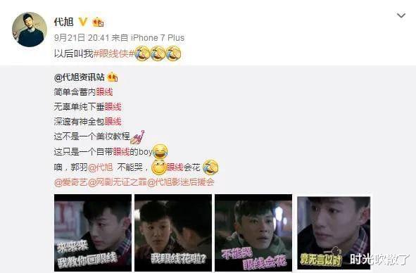 因为睫毛过长,“自带眼线”的代旭被不少网友做成了表情包,他也跟着网友一起把自己玩坏。