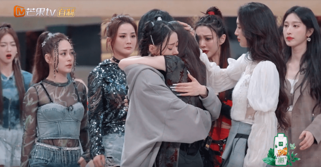 因为知道赵梦跟刘恋感情好,郭采洁暖心的拥抱赵梦安慰她,而赵梦也像委屈的小孩子一样抱着郭采洁落泪。