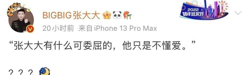 张馨予和何捷的事又被炒起来了,网友考古到当时在节目中何捷怼张大大的片段,张大大在节目中说不服气,为啥何捷怼他不怼张馨予。网友都在说张大大无形之中吃了狗粮,其实当时节目正片中,确实是张大大服装没打理好,何捷也不止怼他了,而是怼了所有人。