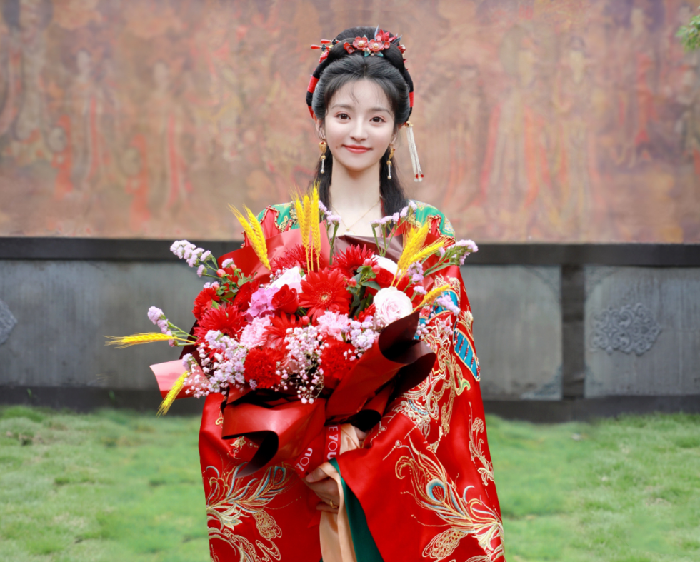 从这些杀青照中可以看到,几位主演身穿古装,手捧鲜花,面对镜头露出微笑,十分喜庆,尤其是饰演“李玉湖”的新人演员田曦薇,杀青当天身穿大红色刺绣古装,头戴发饰,宛如仙女一般,再加上一双大眼睛,给人感觉并不像一位会武功的女子,与当年的黄奕有些许不同。