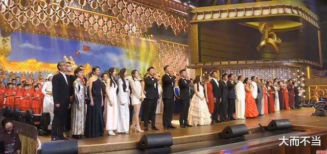 晚会即将结束,“众神”归位,大小艺人分前后一字排开合唱《我的祖国》,晚会达到最高潮。令所有人意外的是,稳站C位的不是成龙,不是刘德华,也不是谭咏麟!而是一位同样德高望重的演艺界前辈,一个浓缩了香港娱乐圈50年历史的奇女子,公认的港圈“一姐”——汪明荃。