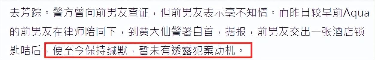 后面其前男友在律师的陪同下去自首了。但是并没有说作案动机。