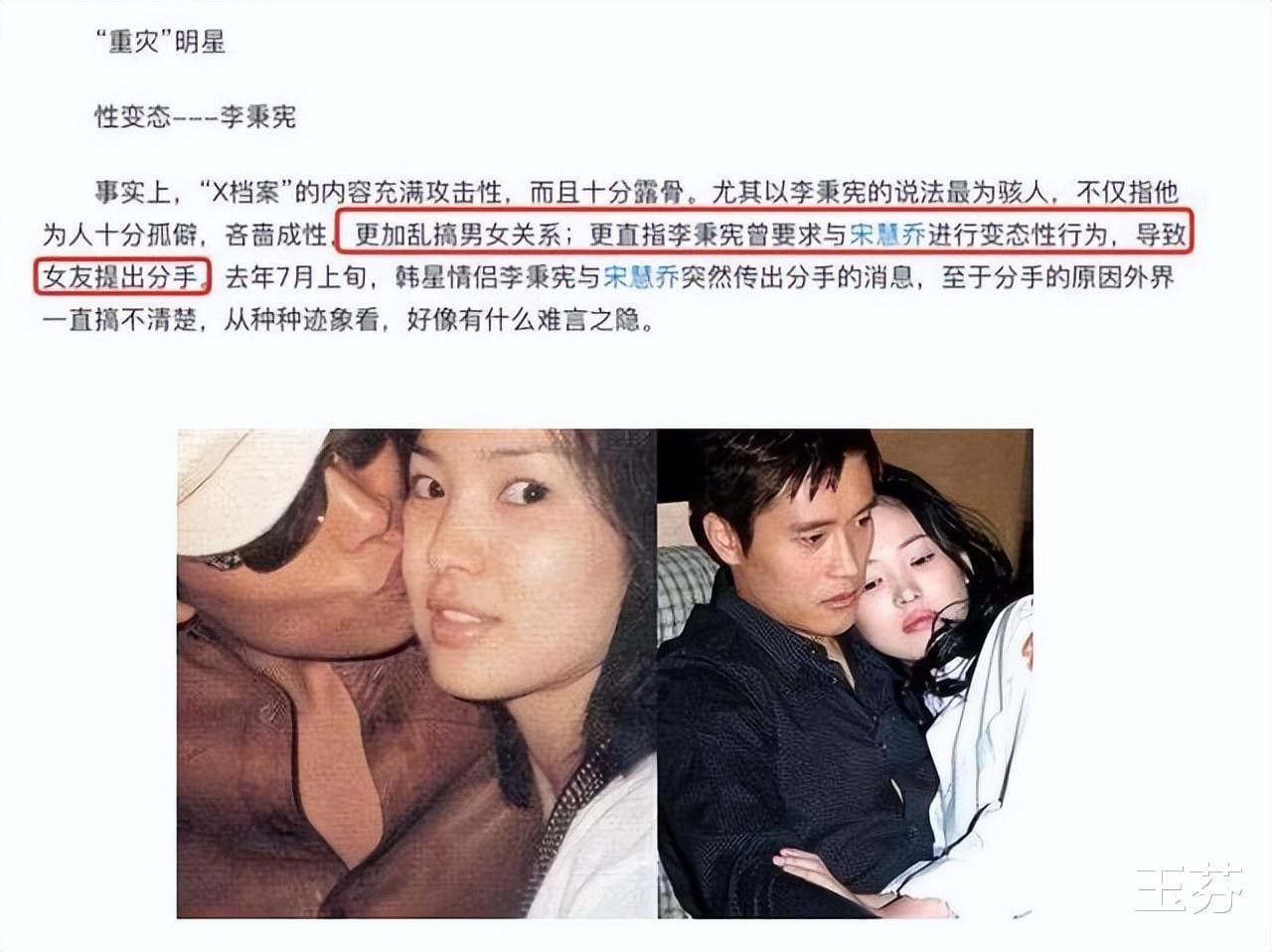 刚开始网友纷纷指责宋慧乔移情别恋,然而随后曝光了一份档案,上面记载韩国99位当红明星的私生活。厚达113页的文件,详细分析了韩国99位当红艺人的现状及走势。而其中,以李秉宪变态最为爆炸。尤其是他与宋慧乔分手的原因,竟然是在性爱过程中玩得太过火,以至于宋慧乔忍受不了说了再见。这让人也不得不心疼一下宋慧乔妹妹,毕竟看起来水灵灵的,想到她曾经遭受到李秉宪非人的折磨,确实令人惋惜。