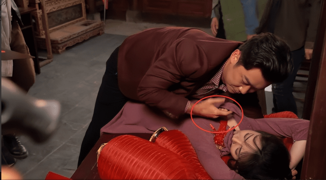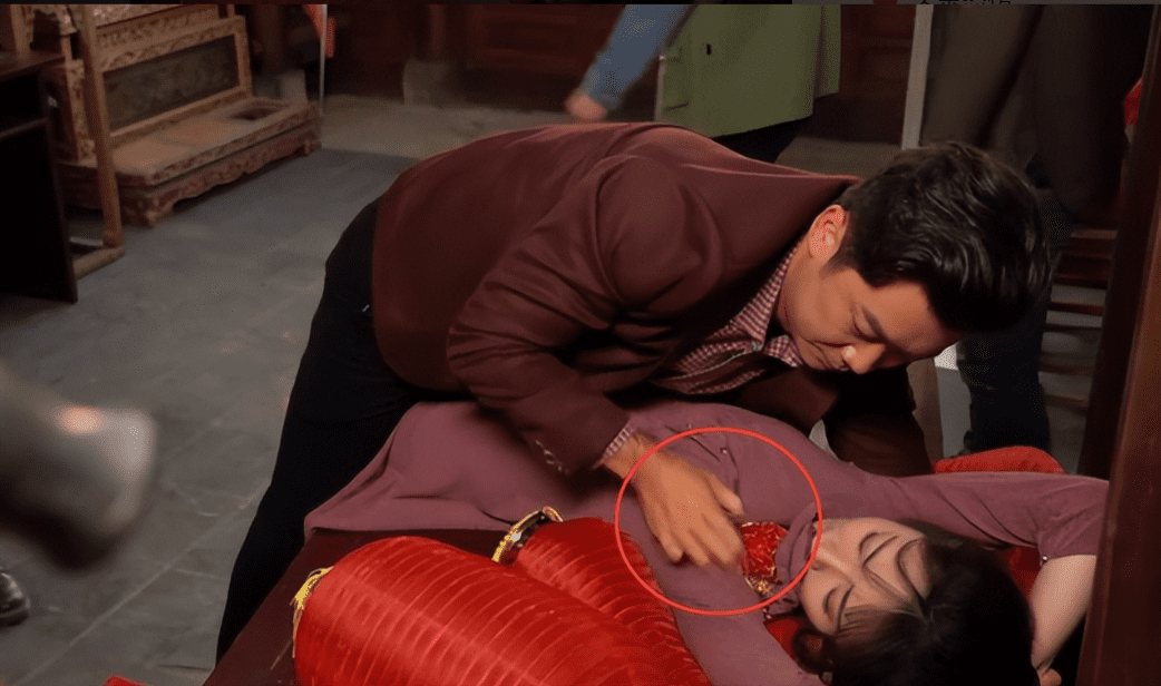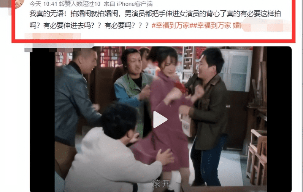 包括戏里那一场“婚闹”的戏,大家在看的时候,看见他的手伸进女演员的背心了。