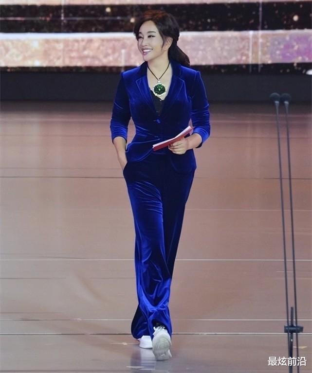在刘晓庆的西装LOOK中,你会常常发现她很喜欢利用套装的形式进行搭配,因为这种穿搭手法,不仅可以减少搭配难题,还能够塑造整体的完整性和协调感,比起绞尽脑汁地去思考要搭配什么样的下装和内搭,倒不如直接采用成套的单品进行搭配,还更加舒适。这套宝石蓝的丝绒西服套装,自带光泽度十分衬托肤色,收腰设计勾勒出小蛮腰,叠穿蕾丝吊带,露出锁骨线条,性感又高级。