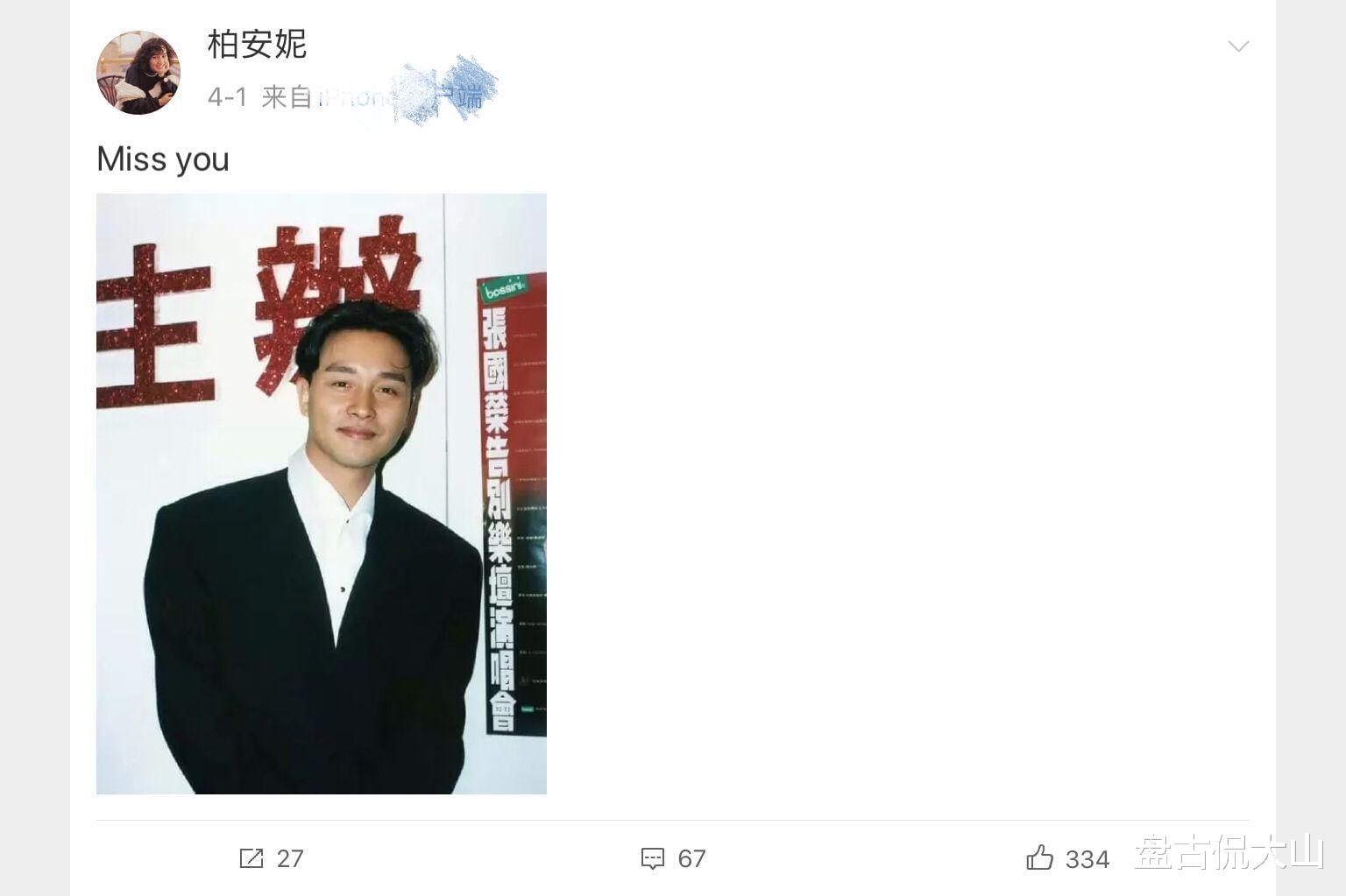 张国荣虽然已经去世很多年,但是柏安妮却没有淡忘这段情义,每年的4月1日是张国荣的祭日,柏安妮都会在这一天缅怀哥哥,虽然只是简简单单的一句“miss you”,但其实却包含了柏安妮对哥哥的无限思念。